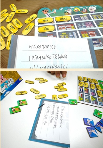 | 商品内容 | 大混雑の病院を舞台にした、大忙しの協力型パーティゲームです。 ラウンドごとに1人がドクター役となり、お手本通りにいくつかの薬の名前を書き写します。ただし、制限時間はたったの25秒!メモはどうしても走り書きに近いものになります。 他のプレイヤーたちは薬剤師役。ドクターのメモを元に、薬名が書かれた錠剤トークンを適切に並べることを目指しますが、こちらも制限時間は2分だけ!結果に応じて患者の体力が回復。規定値に達すればクリアです! ドタバタのメモ書きと、他の全員でやーやー言い合っての解読!仕掛けが満載の全10レベルをお楽しみあれ! プレイ人数:2〜5人/プレイ時間:15分/対象年齢:10歳以上 |
