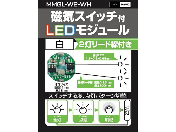 磁気スイッチ付LEDモジュール2灯リード線付き:ホワイト〔ビット・トレード・ワン〕