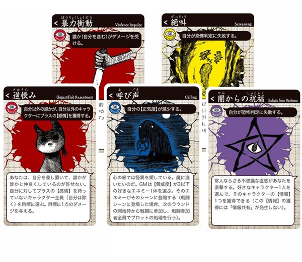 2025年9月に発売された『マルチジャンル・ホラーRPG インセイン 基本ルールブック』に収録された【狂気】96種に、新たな【狂気】3種にブランクカード1枚を加えた、お得なカードセットです。