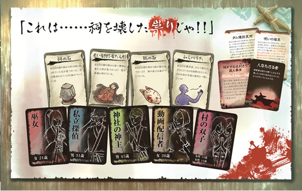 | 商品内容 | 「これは・・・・・・祠を壊した祟りじゃ!!」 ある日、山奥にある村で祭りが盛大に取り行われた。しかしその翌日、凄惨な殺人事件がおこってしまった! しかし村にいた容疑者は全員、妄想力と言い訳だけが達者で、推理能力はゼロ! もちろん犯人が誰かわからない。重要なのは犯人を見つけることではない、妄想を膨らませ犯人はこいつだと決めつけることだ! 容疑者の中で最も怪しいものを口八丁でつるし上げ、裏切り者を村の座敷牢にぶち込もう! 何度も遊べるミステリー風言いわけゲーム、『そういうお前はどうなんだ?」シリーズ待望の続編が遂に登場! 今回の舞台は怪しげな伝承がある因習村! ミニ拡張『祭り』カードを加えることでより物語に深みが出る拡張となっています! 話題となった何度も遊べる ミステリー風言いわけゲームをぜひお楽しみください! プレイ人数:3〜6人/プレイ時間:20分/対象年齢:12歳以上 |