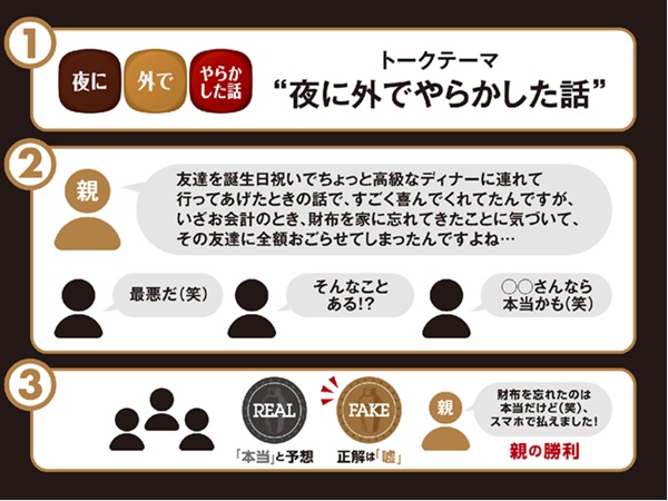 親の話すエピソードが「嘘」か「本当」か見破る嘘つき雑談ゲーム。