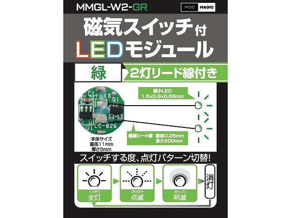 磁気スイッチ付LEDモジュール2灯リード線付き:グリーン〔ビット・トレード・ワン〕