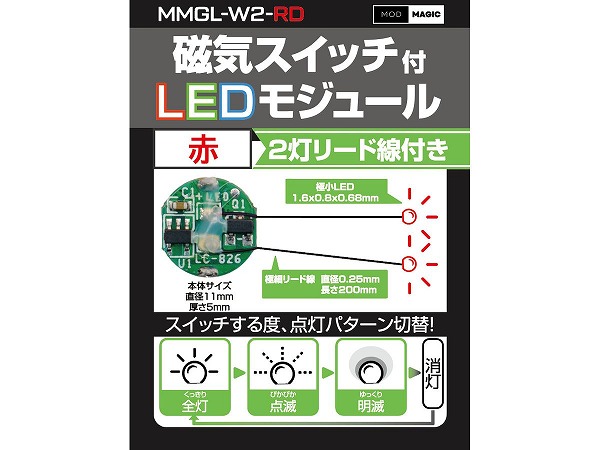 磁気スイッチ付LEDモジュール2灯リード線付き:レッド〔ビット・トレード・ワン〕