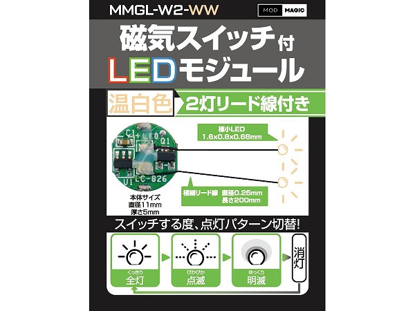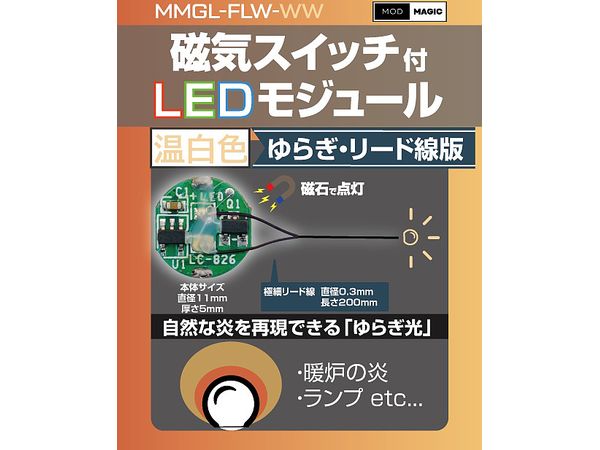 磁気スイッチ付LEDモジュール ゆらぎリード線付き:ウォームホワイト〔ビット・トレード・ワン〕